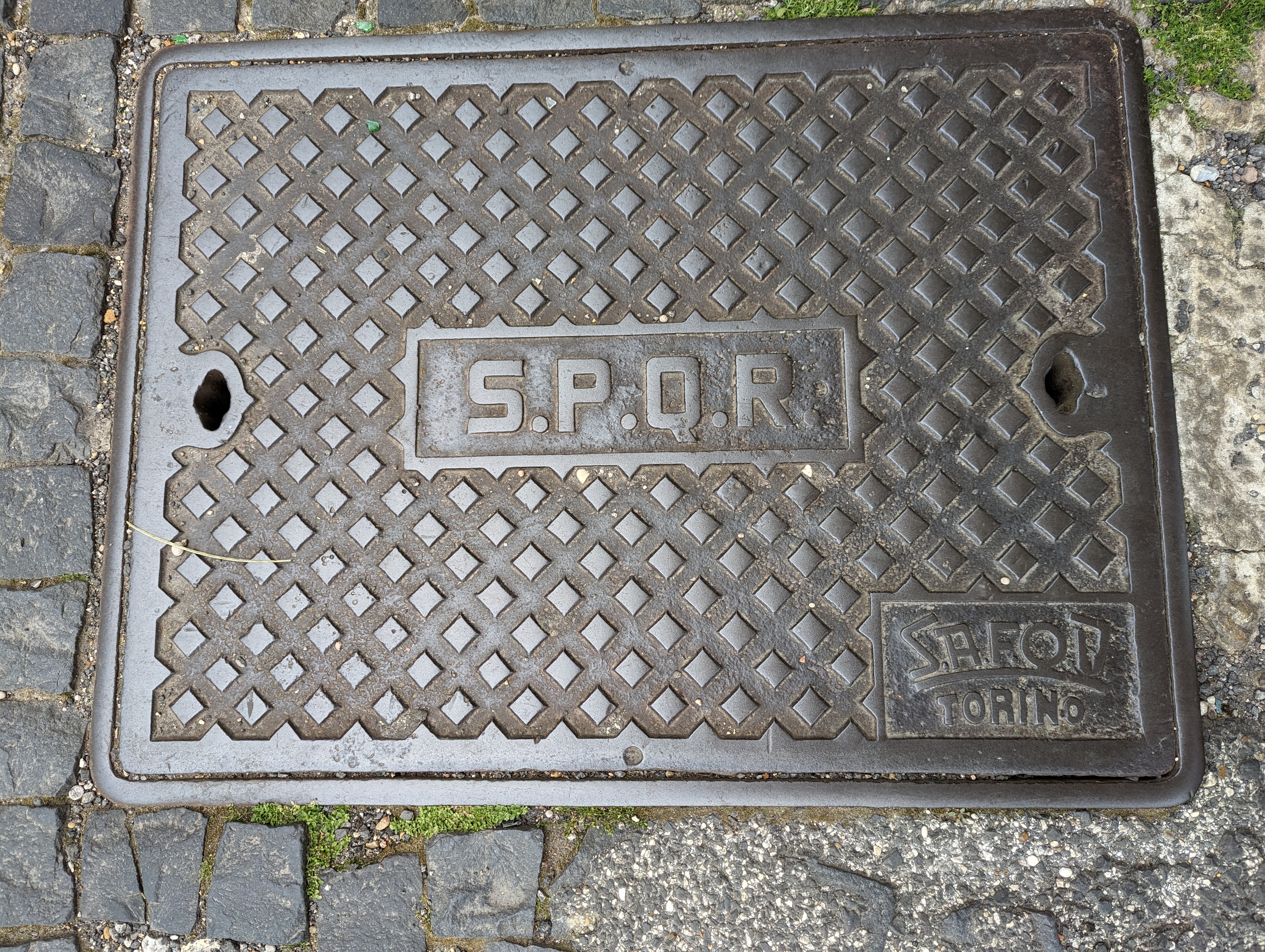 I was aware that ancient Rome was called SPQR, Senatus PopulusQue Romanus, “The Senate and People of Rome”. I didn’t realize before being here that everyone still knows and uses the term SPQR in modern Rome.